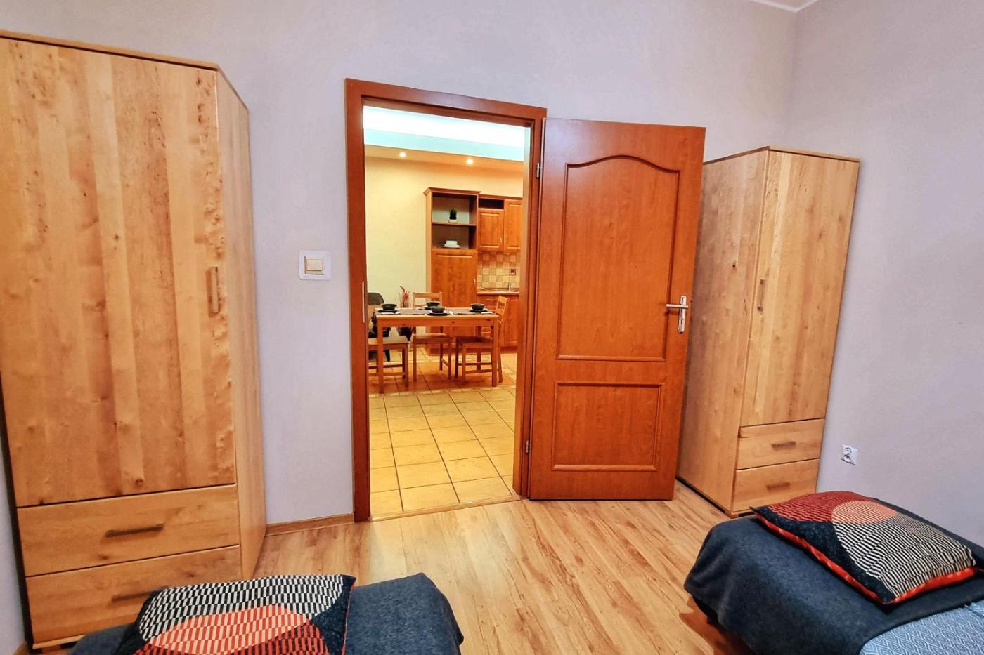 Apartament z 3 sypialniami. Featuring a private entrance, this apartment consists of 1 living room, 3 separate bedrooms and 1 bathroom with a shower and a hairdryer. The fully equipped kitchen features a stovetop, a refrigerator, a dishwasher and kitchenware. The apartment provides a washing machine, a tea and coffee maker, a dining area, a flat-screen TV with cable channels, as well as garden views. The unit offers 7 beds. Apartament - 9 osobowy. Powierzchnia pokoju ok.: 50 mkw.
